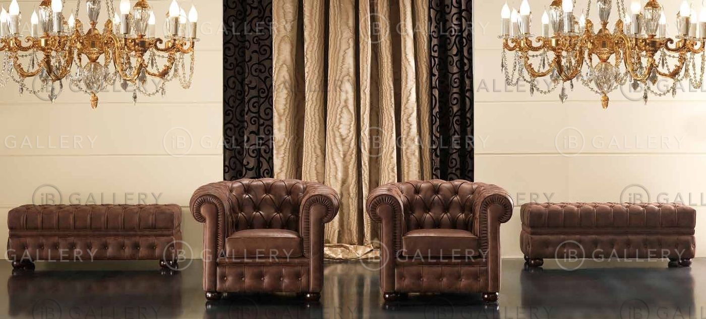 Каркас выполнен из дерева, ножки круглой формы. Обивка из кожи или текстиля, ассортимент по каталогу фабрики.