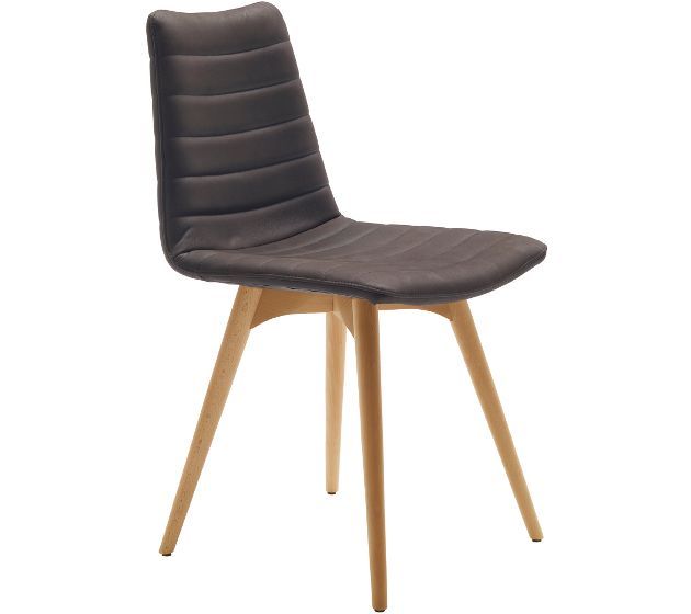 Сиденье и спинка в мягкой обивке, украшены горизонтальной строчкой. Обивка выполнена из кожи или текстиля, широкий выбор по каталогу.