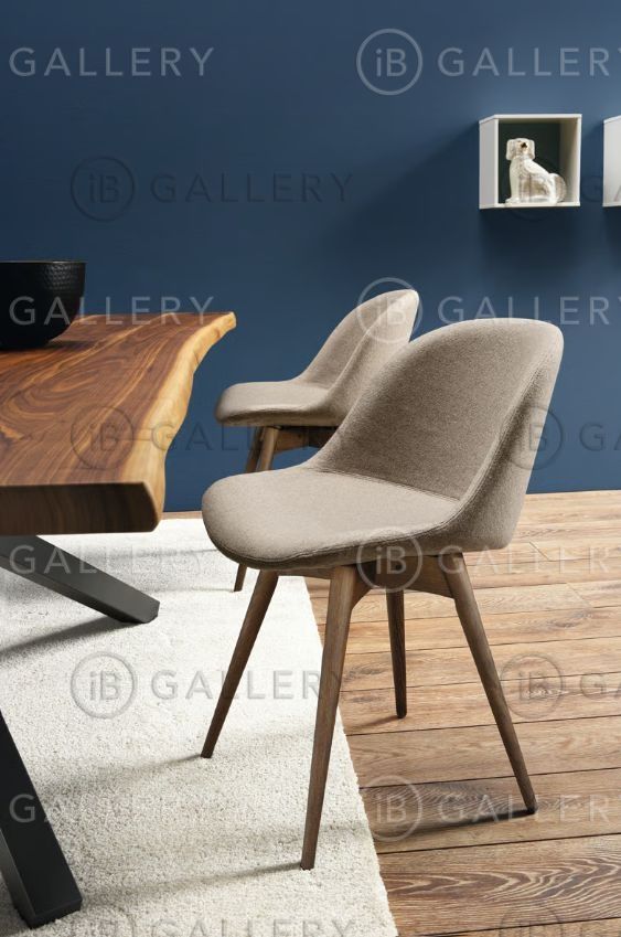 Обеденный стул на каркасе из дерева. Обивка сиденья из текстиля или кожи, ассортимент отделок по каталогу фабрики.