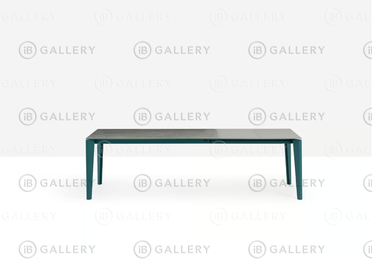 Обеденный стол в современном лаконичном дизайне. Основание выполнено из окрашенной стали.