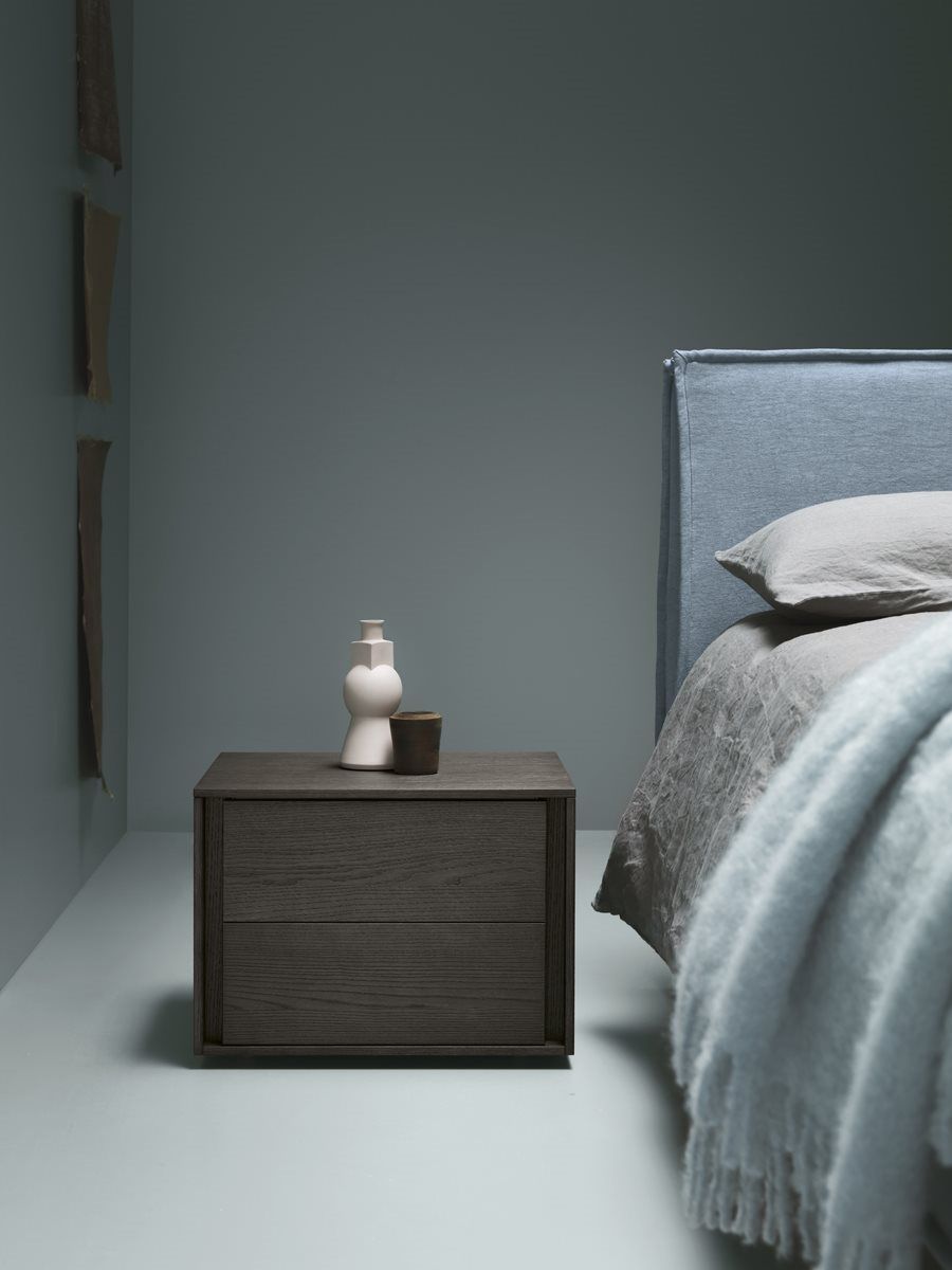 Современная деревянная прикроватная тумба с двумя выдвижными ящиками. Три варианта отделки каркаса, множество цветовых решений.