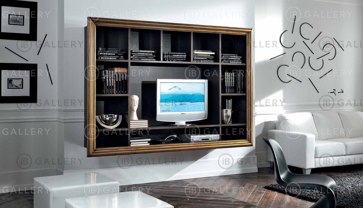 Состоит из открытых полок по краям и ниши для телевизора посередине.