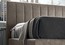 Современная кровать с высоким мягким изголовьем. Изголовье с вертикальной строчкой. Выбор текстильных обивок по каталогу фабрики.