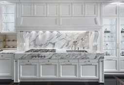 Белая кухня, выполненная в лучших традициях классического дизайна.