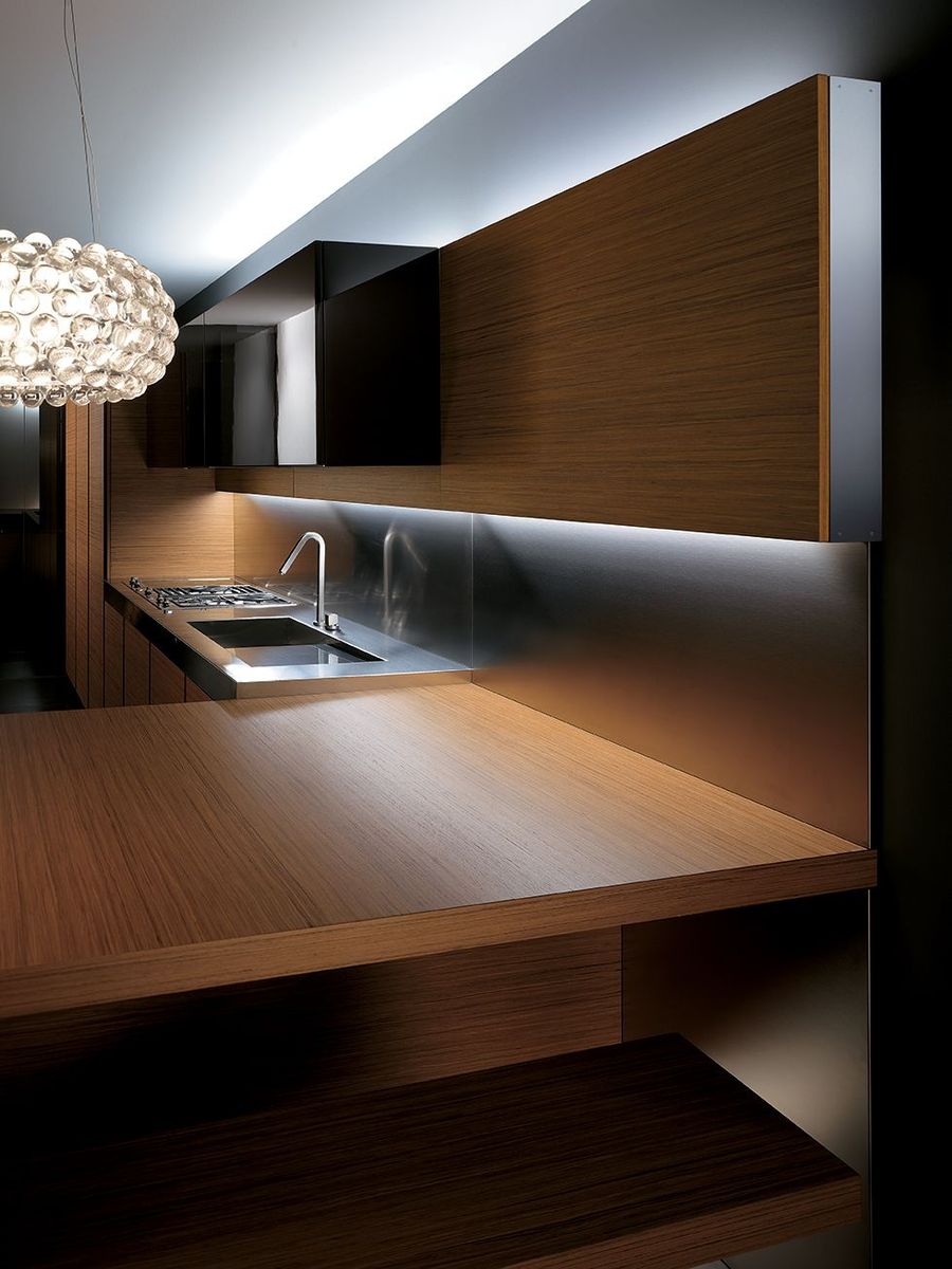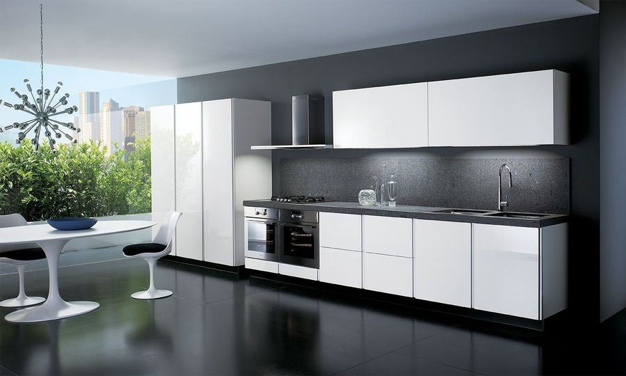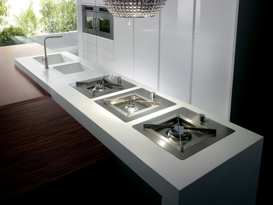 Дизайнерская кухня в минималистичном стиле. Образ создается благодаря строгих линий и современным технологиям, использованных в производстве.