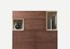 Буфет с открытыми модулями, выдвижными ящиками, распашными дверьми. Модули сделанные из деревянных панелей, прикрепленных на петлях. Внутренние полки сделаны из прозрачного стекла.