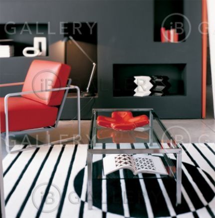 Каркас выполнен из стали матовый и никелированный, либо может быть окрашен в черный цвет. Столешница, толщиной 8 мм. Она сделана из закаленного прозрачного стекла или из черного окрашенного зеркального стекла. Оснащен полкой.