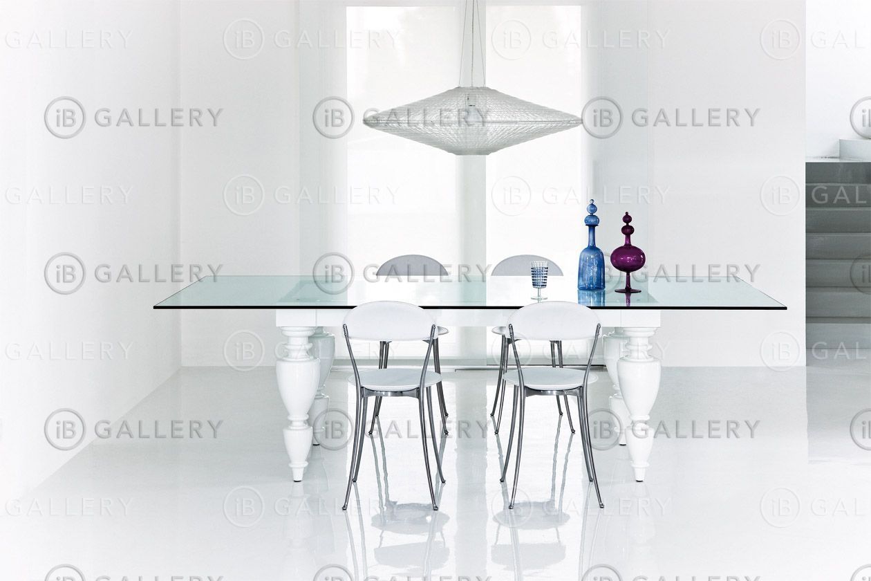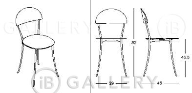 Рама сделана из алюминиевого сплава. Отделка полировка или окрашена в черный. Сиденье и спинка из полипропилена, покрытые кожей 95 в широком спектре цветов коллекции.