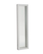 Стекло зеркала толщиной 5 мм. Рамка зеркала представлена в коже с золотым, голубым или фиолетовым оттенком. Крепление к стене при помощи бронзированной металлической пластины.
