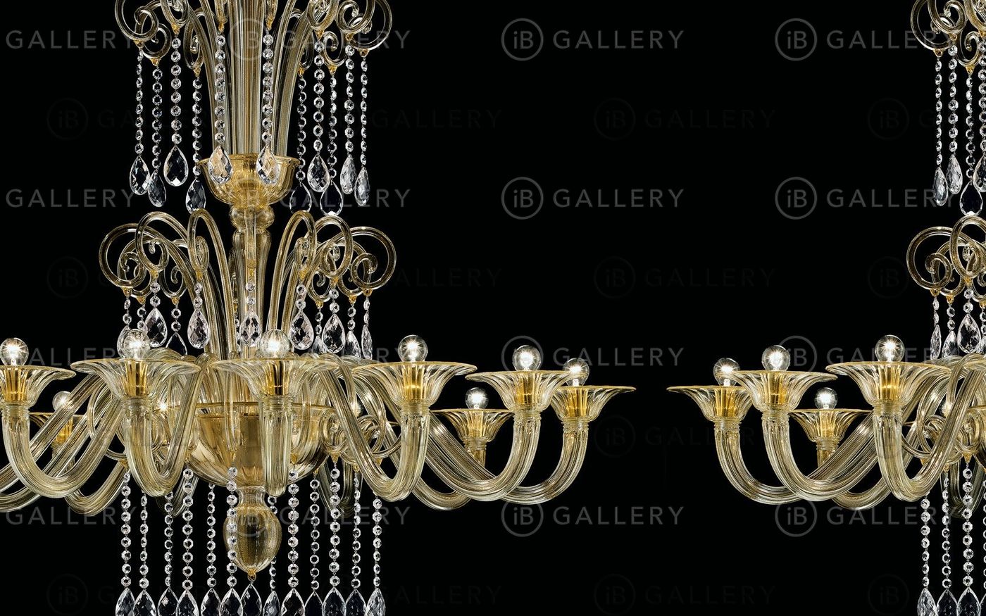 Люстра представлена в варианте 6, 8, 12, или 18 ламп, в 7 различных цветах. Так же представлена отделка в полированном золоте.