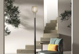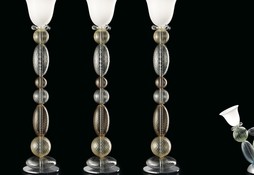 Металлические части изготовлены из полированного хрома. Оснащен абажуром.