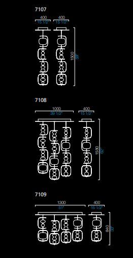 Подвесные элементы выполнены из выдувного стекла белого цвета. Доступно 2 высоты и несколько комбинаций.