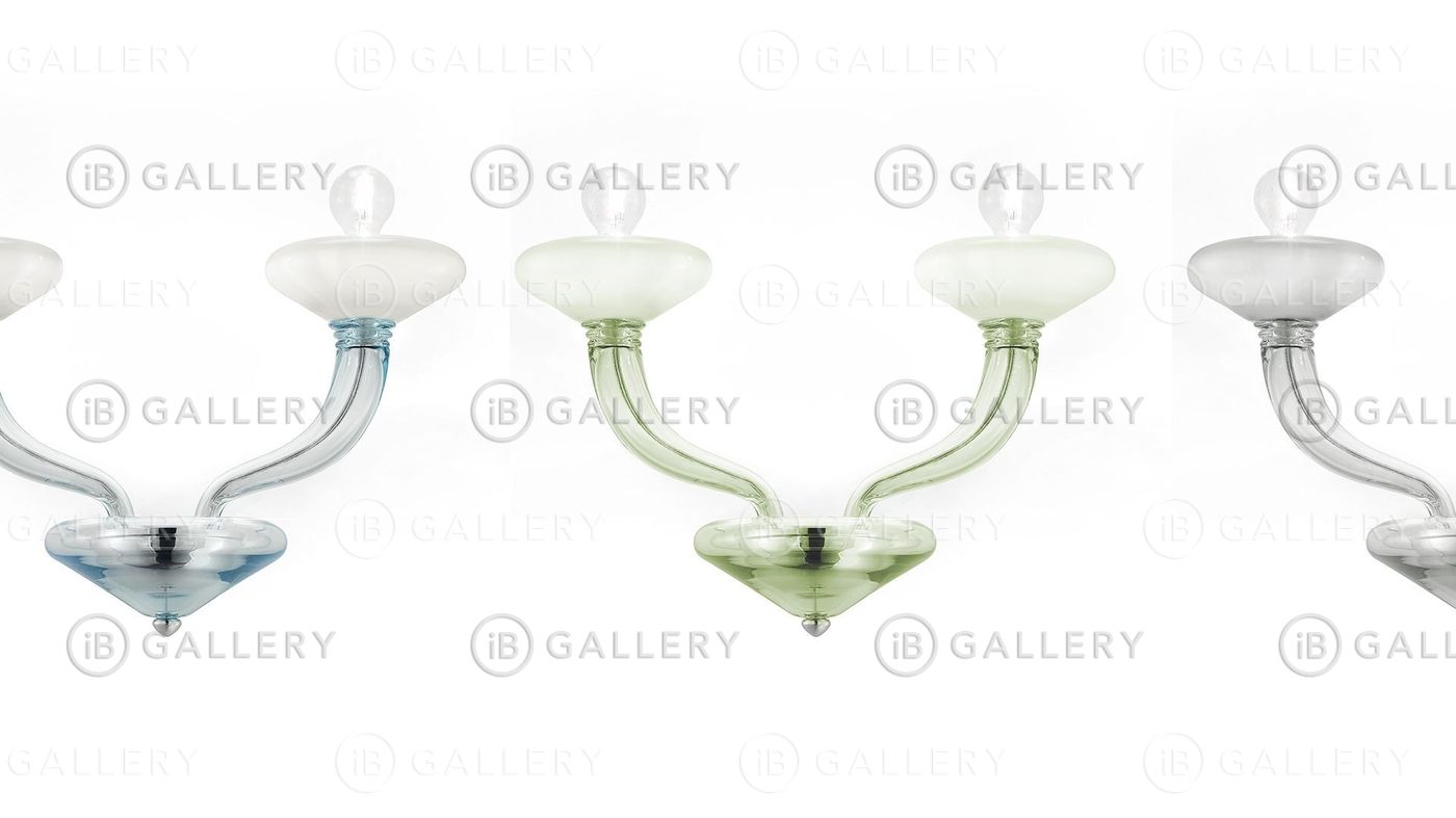 Светильник выполнен из прозрачного и белого стекла. Металлические детали представлены в хроме.