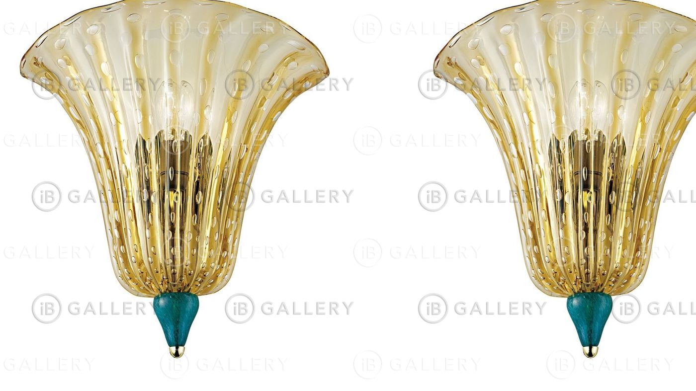 Плафон выполнен из стекла в двух оттенках. Видимые части металла из полированной латуни.