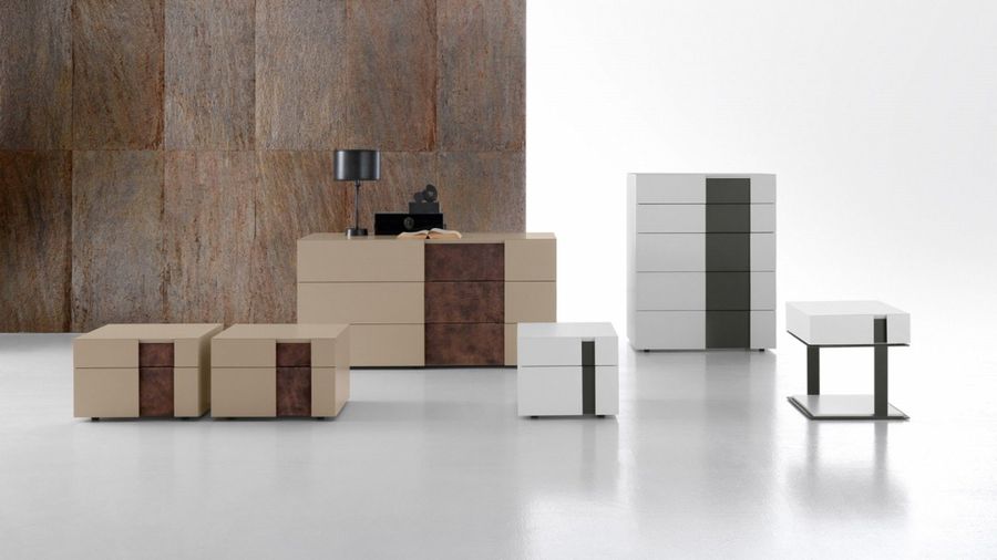 Модель комода и тумбы, представленных в шикарном и утонченном дизайне. Вставка может быть выполнена в коже.