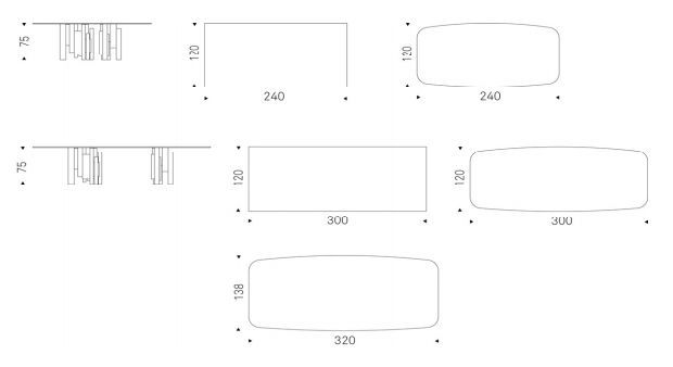 Основание выполнено из лакированной стали в цвете титан, графит или черный. Столешница сделана из керамики в глянцевой и матовой отделке в цветах Marmi Calacatta (KM01), Alabastro (KM02), Ardesia (KM04), matt Golden Calacatta (KM05), glossy Golden Calacatta (KM06), matt Portoro (KM07), glossy Portoro (KM08), glossy Sahara Noir (KM09) или Brown Zinc (KZ01).