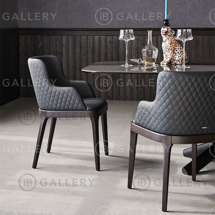 Стул доступен в версии с подлокотниками и без. Спинка декорирована фигурной строчкой.