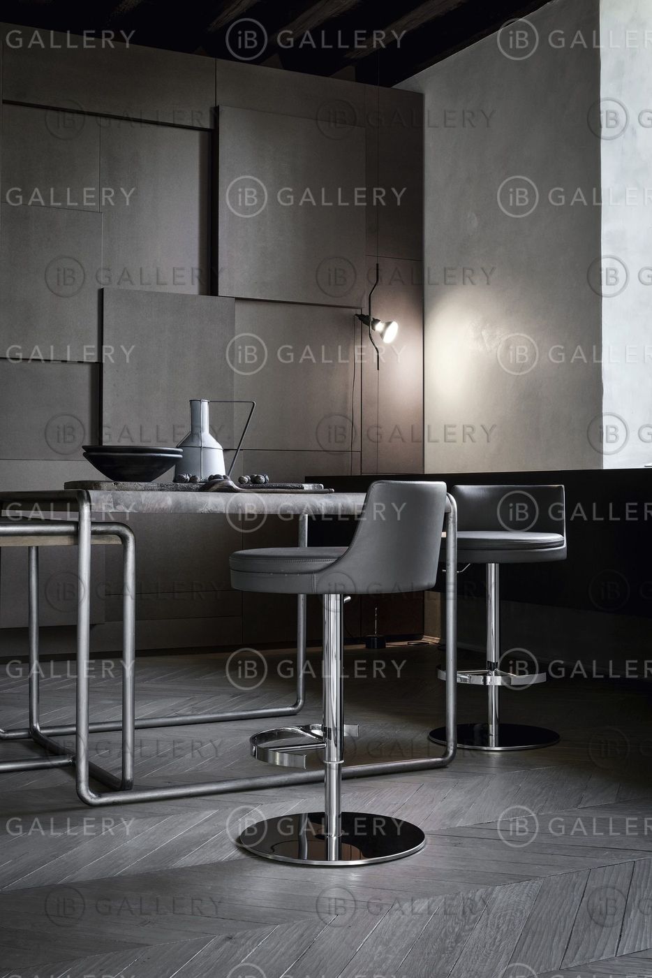 Обивка представлена в коже или текстиле. Основание может быть сделано из хрома или темного хрома.