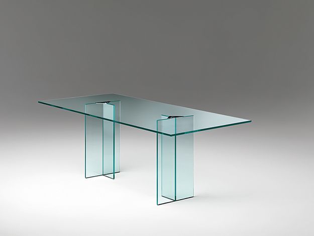 Столешница из прозрачного стекла толщиной 19 мм. Основание выполнено из склеенного стекла. Доступно два размера.