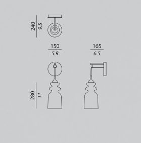 Основание выполнено из хрома или бронзы. Диффузор сделан из хромированного или бронзового стекла.