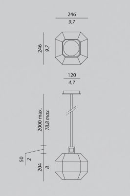 Основание состоит из длинного черно кабеля и полированного никеля. Плафон сделан из хрусталя.