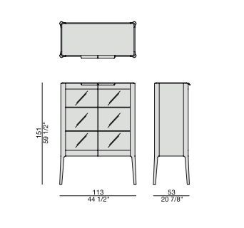 * Цена указана за комод Atlante 2 в размере 113*53*151 см на основании Canaletta walnut со столешницей Glass top