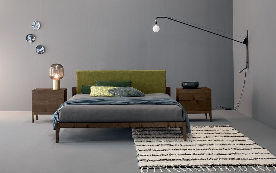 Модная кровать, выполненная в лаконичном дизайне.