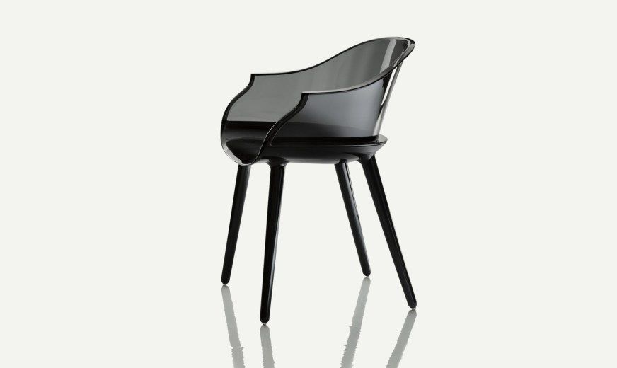 - Элегантный стул с плетеной спинкой, сделан из поликарбоната