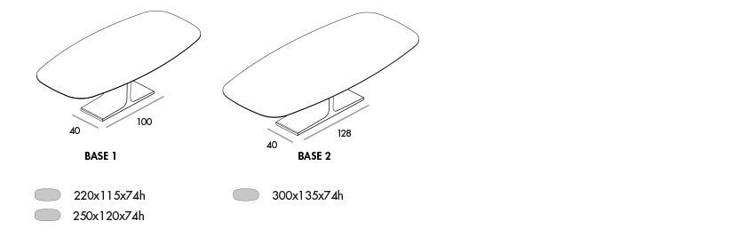 * Цена указана за стол Palace shaped P1578 в размере 220*115*74 см с базой GB/GN/GT/GC, VETRO EXTR. EXTR. GLASS и столешницей Cat. B / D