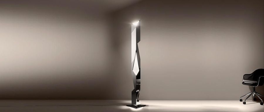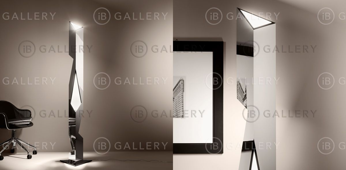 Оригинального дизайна напольный светильник с каркасом, ламинированным черным пластиком высокого давления регулируемой яркостью света.