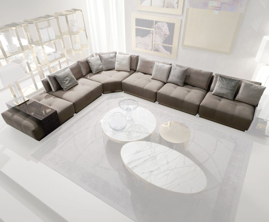 Модульный диван с двойной декоративной стёжкой по мягкому основанию и подушкам сиденья.