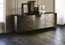 Дверцы из матового бронзового стекла с украшениями из золотого стекла. Профили из алюминия в титановом цвете. Ножки из полированной нержавеющей стали в матовом белом цвете или графитовом цвете. Внутренние полки из стекла.