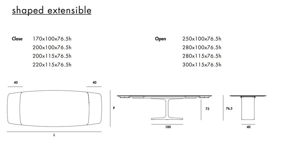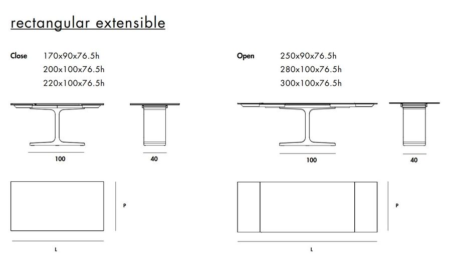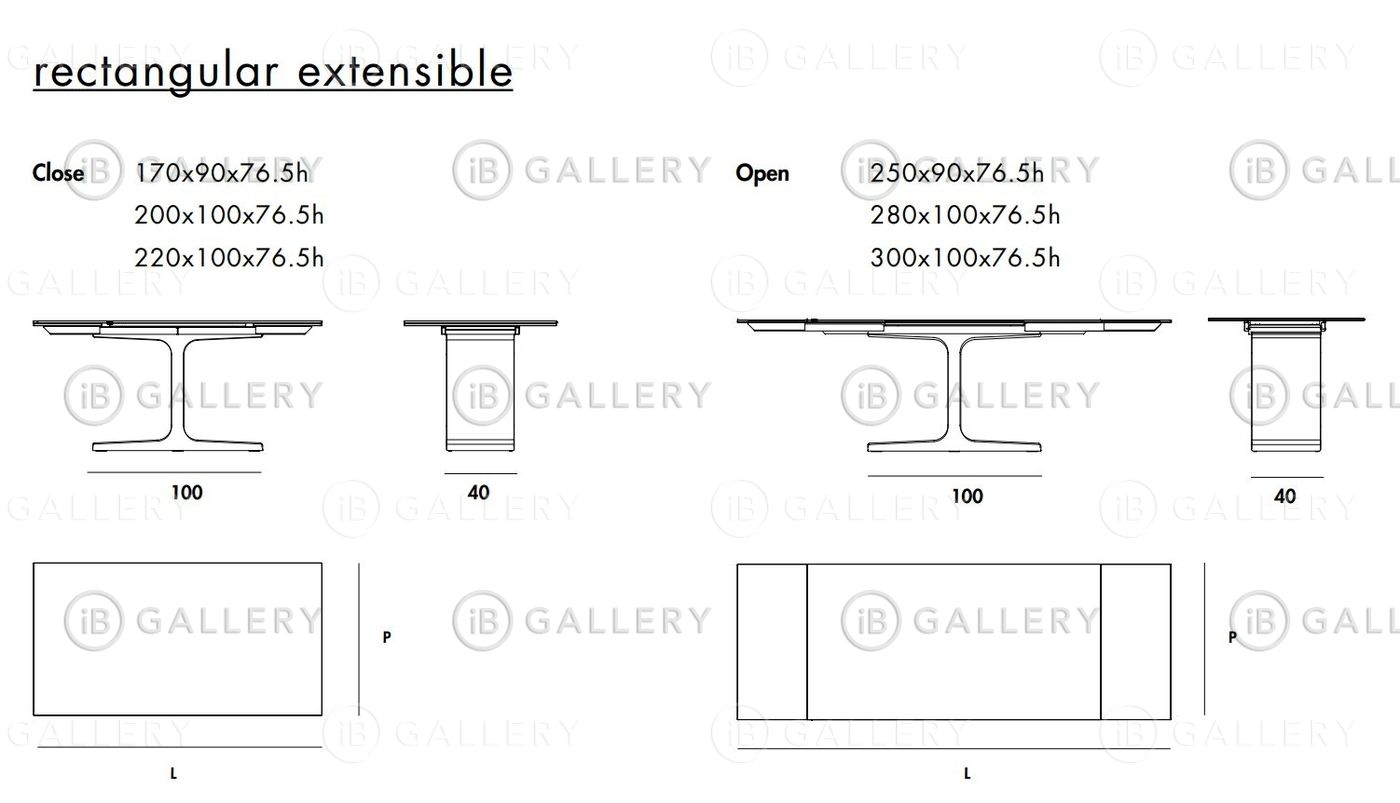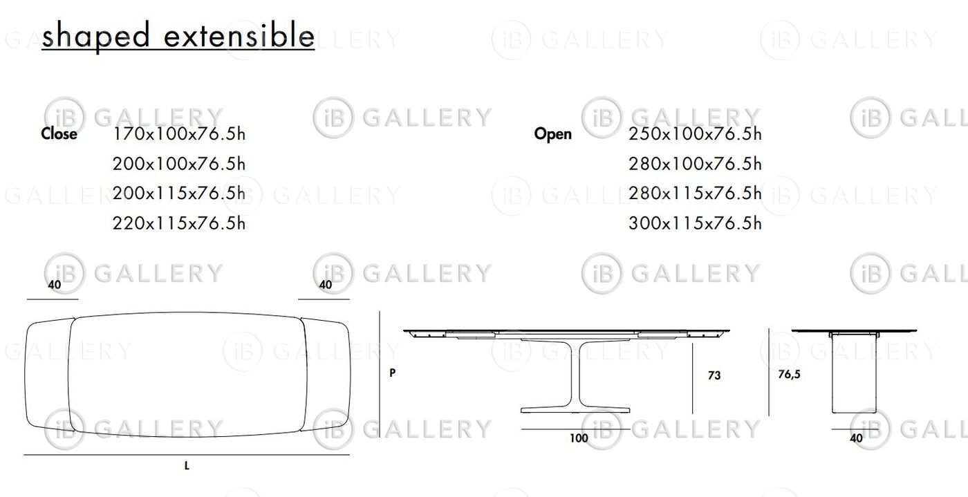 * Цена указана за стол Palace extensible P1572 в размере 170/250*90*76,5 см на базе GB/GN/GT/GC с закругленной стеклянной столешницей Cat. B / D