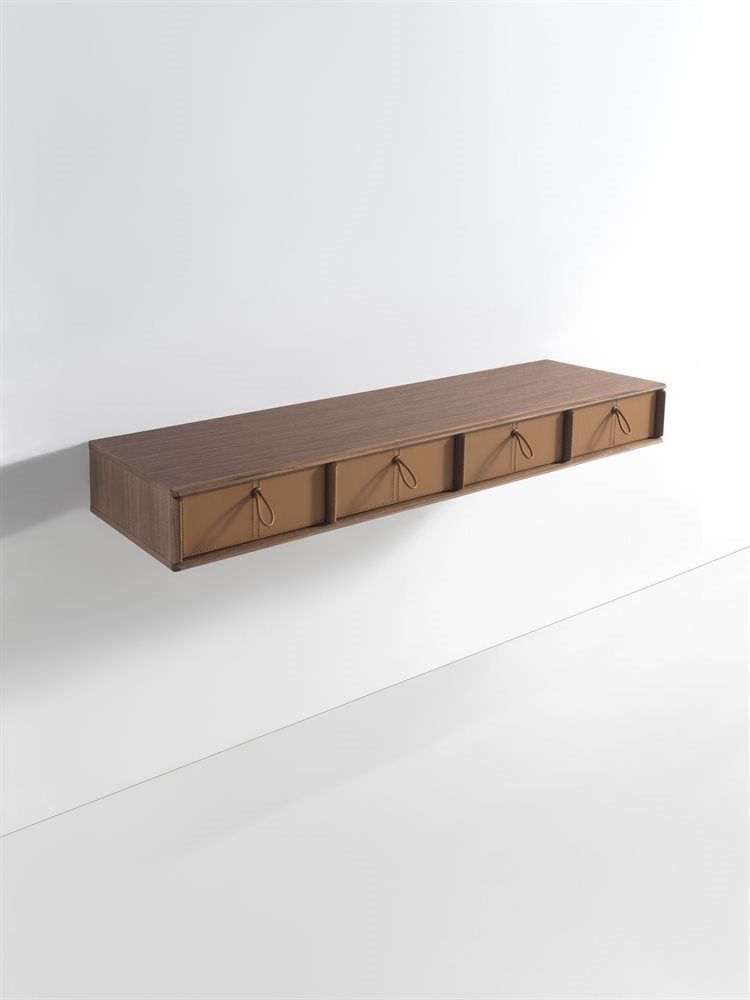 Полка из ореха каналетто с двумя отделениями, с возможностью вставки максимум двух ящиков.