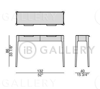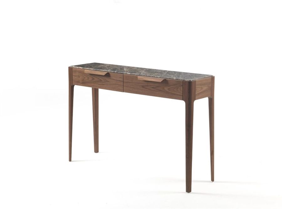 Консоль с двумя ящиками с рамой из массива ореха каналетто и деревянной или мраморной столешницей.