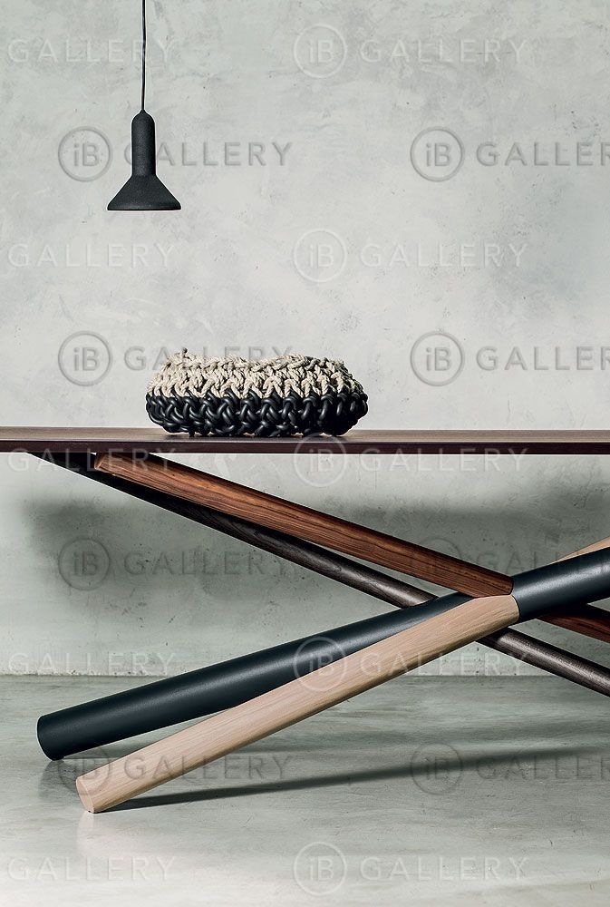Стол сделан из американского ореха, белого дуба и термообработанного дуба.