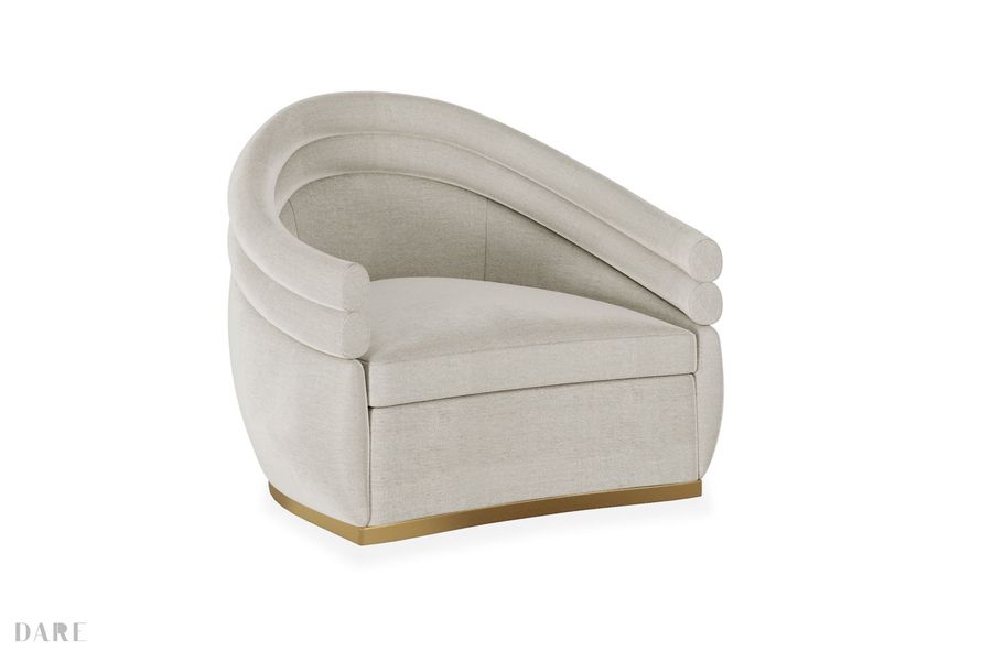 Обивка кресла представлена в текстиле. Основание кресла в отделке из латуни.
