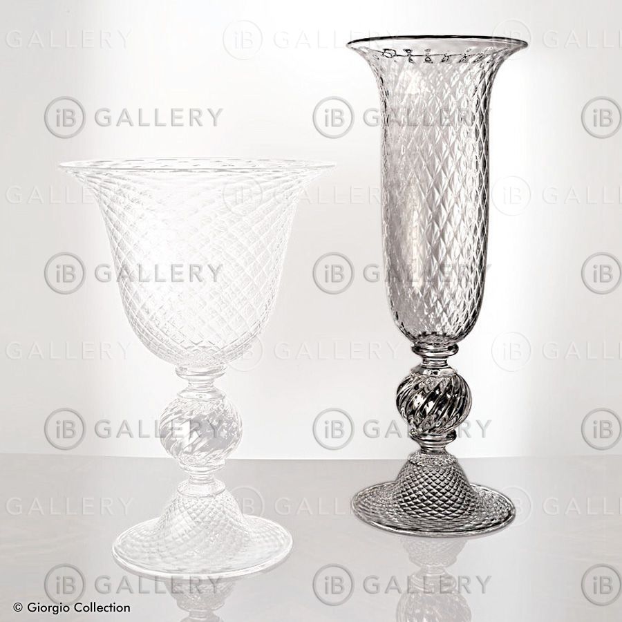 Ваза с шаром из венецианского прозрачного выдувного хрусталя «Murano» и напылением из платины.