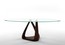 Изогнутое деревянное основание закручивается и вращается до самого верха, удерживая легкую и драгоценную стеклянную столешницу.