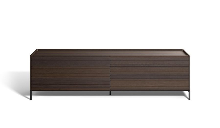 Ножки тонкие и невысокие. Комод представлен в широкой линейке отделок и цветов. Структура выполнена из дерева.