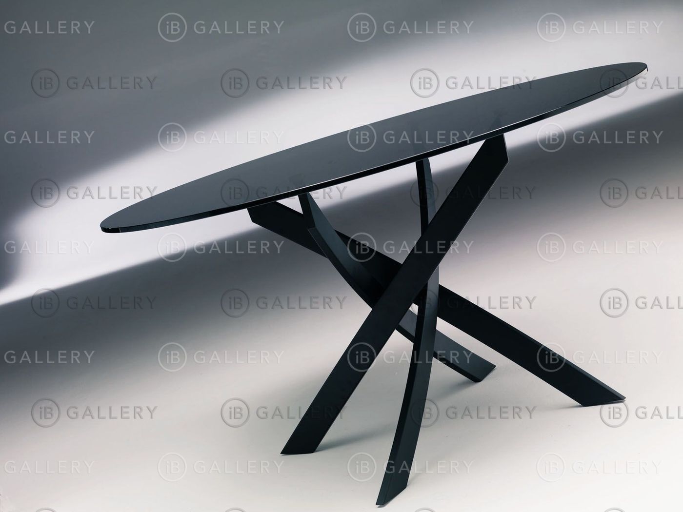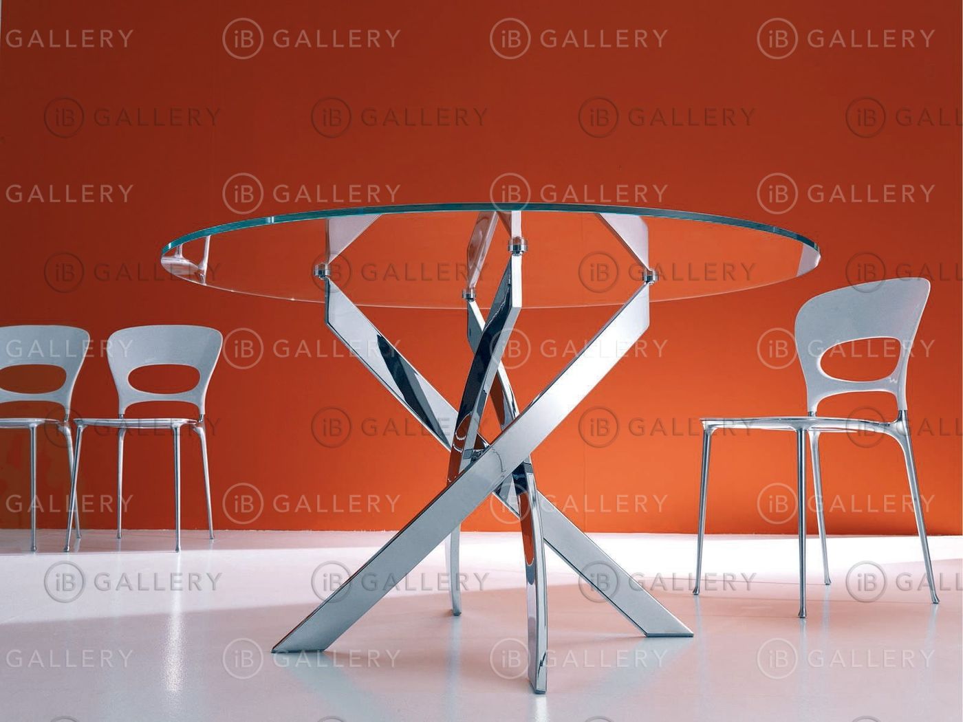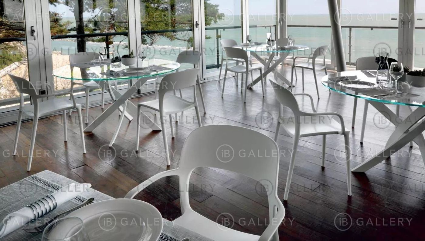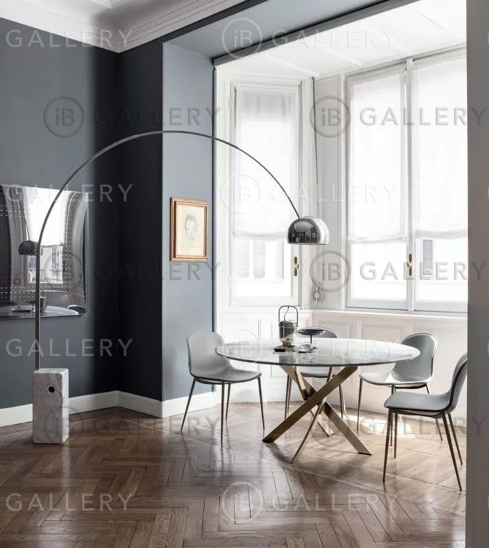 Обеденный стол с круглой или овальной столешницей, выполненной из закаленного стекла, шпона или мрамора.