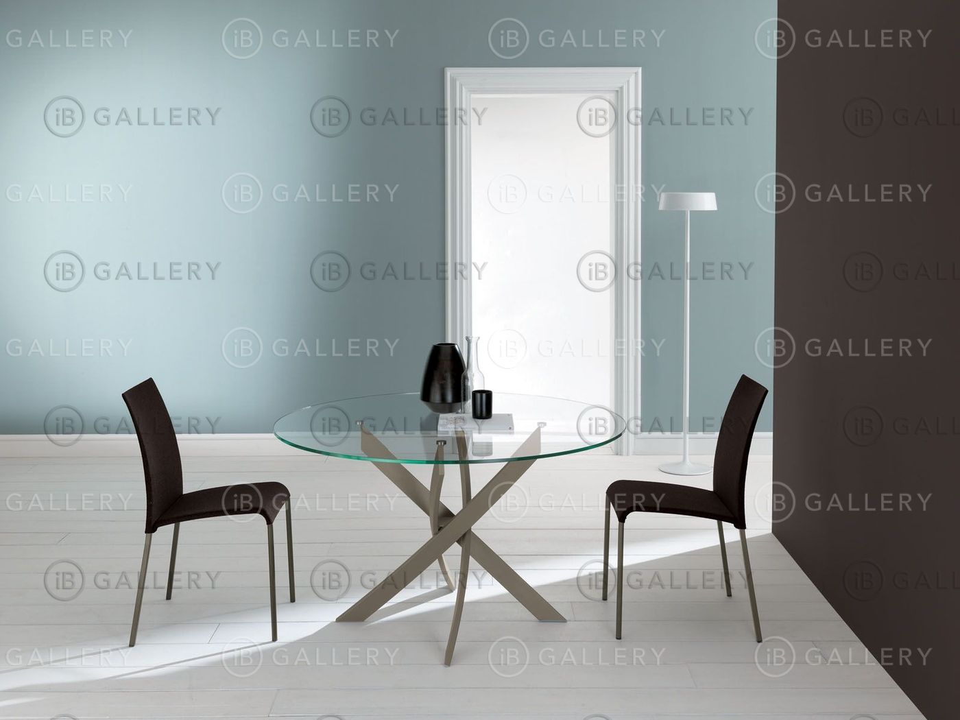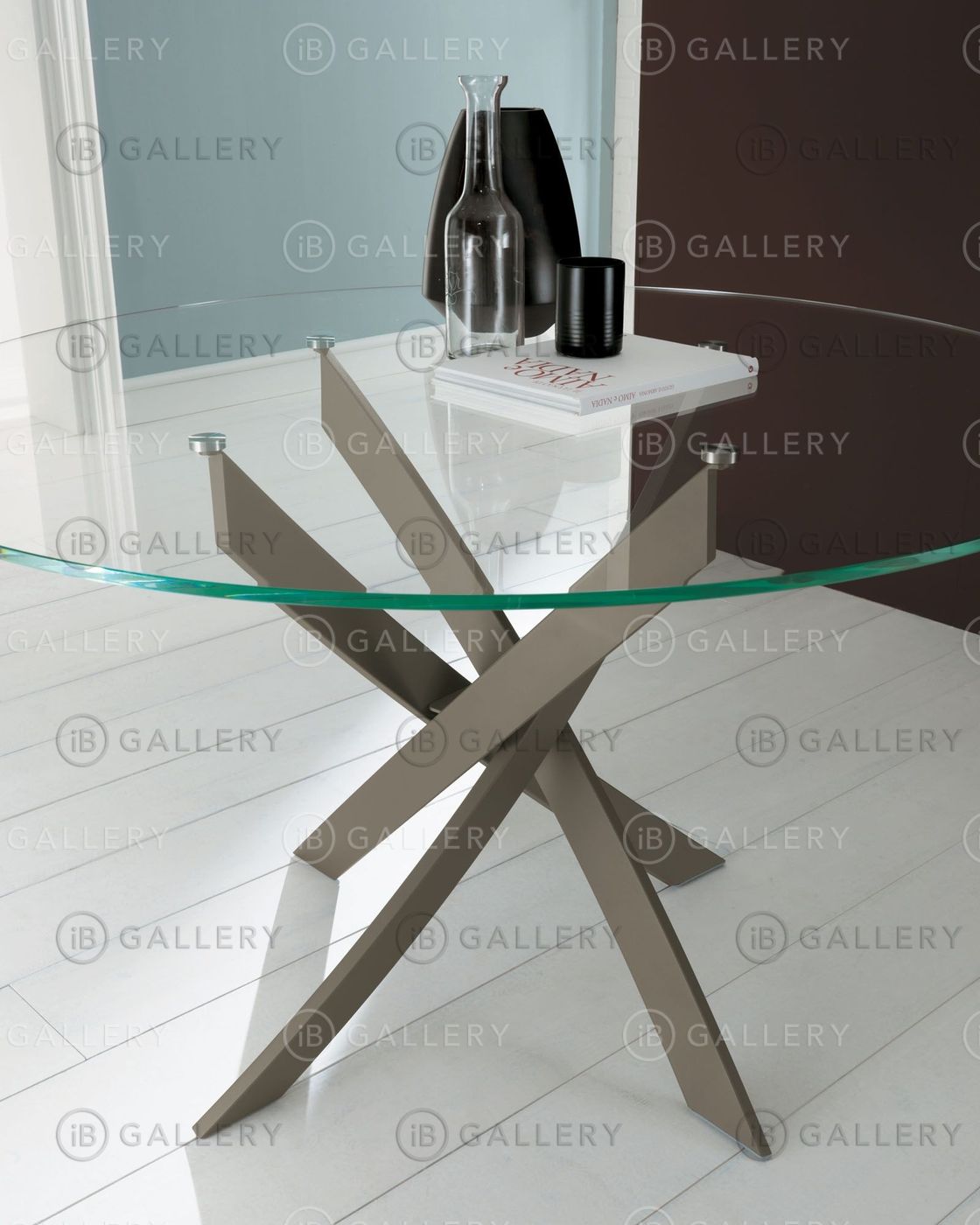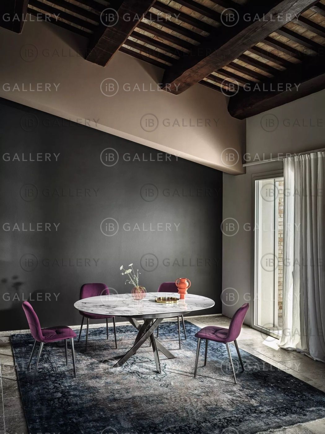 Обеденный стол с круглой или овальной столешницей, выполненной из закаленного стекла, шпона или мрамора.