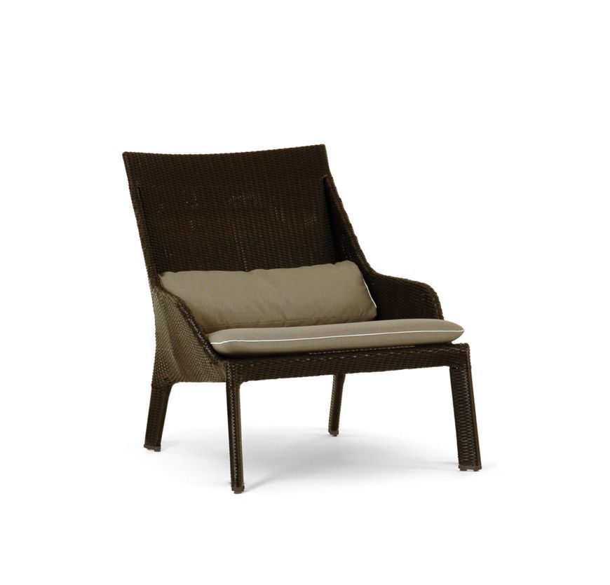 Кресло для открытого воздуха плетеное на алюминиевом каркасе с низкими подлокотниками.