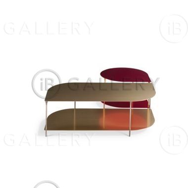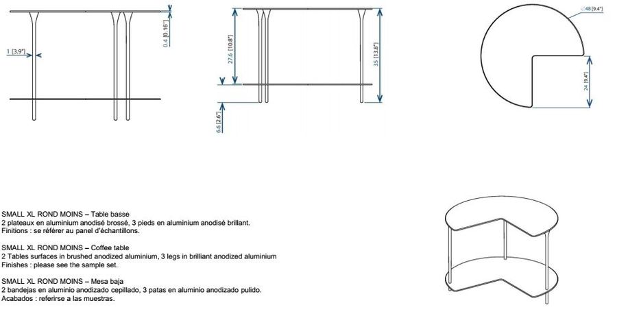 Журнальные столики серии SMALL XL представляют собой две столешницы из анодированного алюминия толщиной 4 мм, с отделкой сатинированным золотом, на четырех ножках из анодированного алюминия с глянцевой серой отделкой.