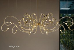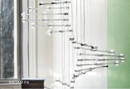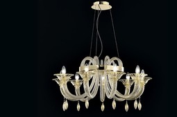 Каркас выполнен из лакированного металла в оболочке из стекла. Подвесы сделаны из хрусталя. Доступно несколько расцветок.