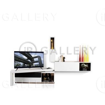 Композиция состоит из: тумбы для телевизора с поворотным элементом и трех навесных ниш с дверцей.