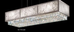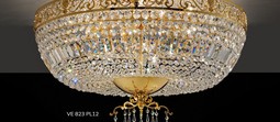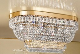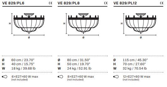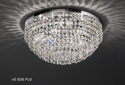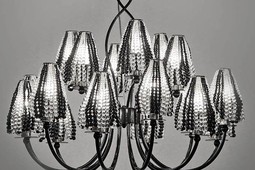 Структура сделана из лакированного металла. Подвески представлены в отделке из стекла или хрусталя.