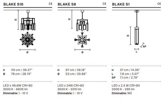 Доступен с 1, 8 или 16 лампочками. Отделка представлена в металле и стекле.