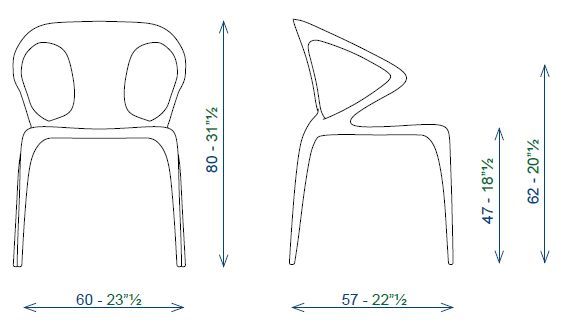 Кресло с эко-дизайном, изготовленно методом литья под давлением, из прозрачного поликарбоната (доступно 7 цветов) или из непрозрачного глянцевого полиамида (доступно 3 цвета).