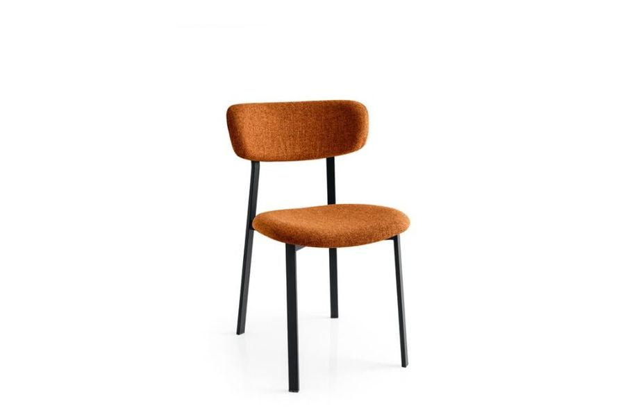 Рама сделана из окрашенного металла. Оснащен мягкой спинкой и сиденьем, обитыми искусственной кожей или тканью, доступен в различных цветовых вариантах.